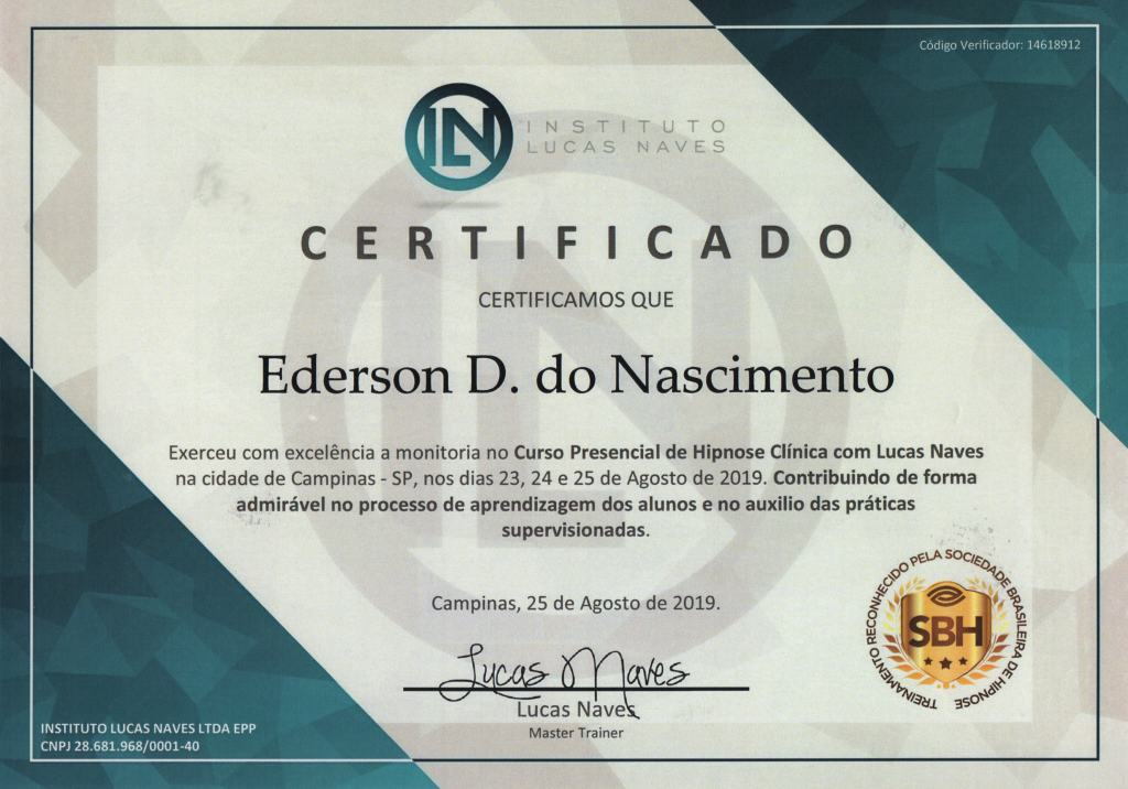 Com ampla experiência e conhecimento de Hipnose, PNL e Psicanálise, aprimorou as técnicas chegando a excelência no processo terapêutico tornando o atendimento ainda mais rápido e eficaz. Formado pelos melhores Institutos do Brasil, a Hipnose Institute e o Instituto Lucas Naves.